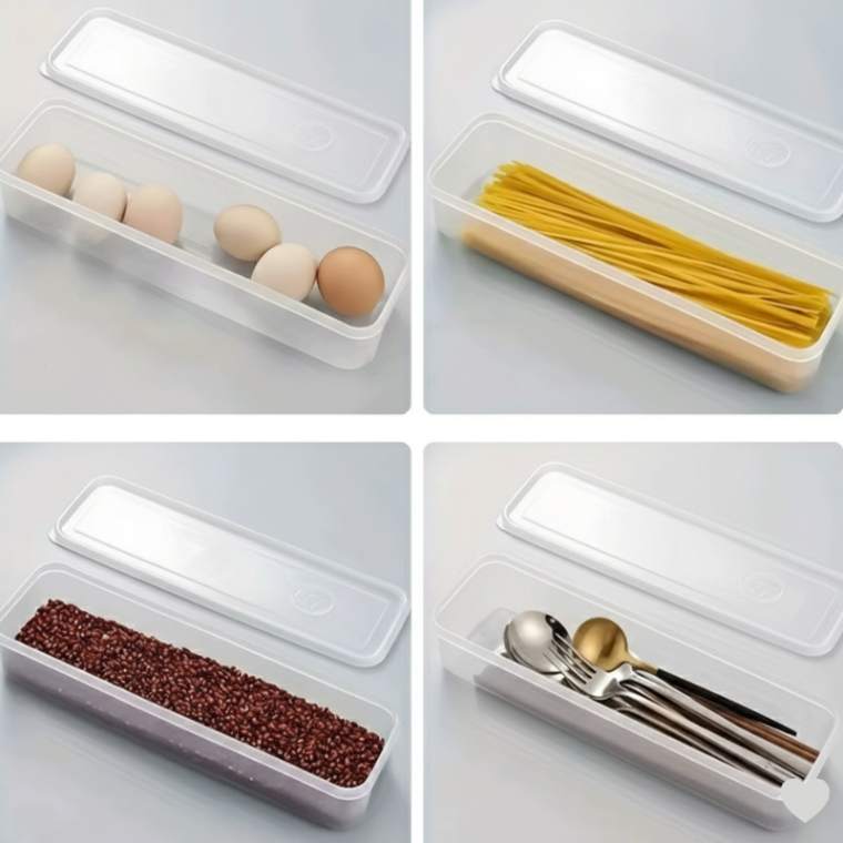 Com design empilhável e transparente, ela economiza espaço, mantém os alimentos frescos e protegidos, e traz clareza visual, tudo com estilo e funcionalidade.