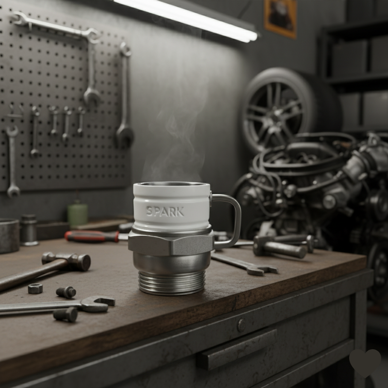 Essa caneca traz o espírito da garagem para a sua mesa: uma caneca em formato de vela de ignição, criada especialmente para entusiastas automotivos, mecânicos, colecionadores e apaixonados por velocidade.