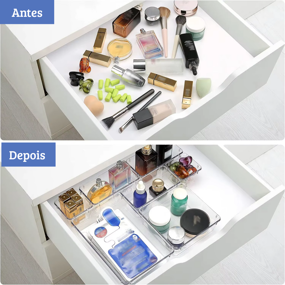 Você já perdeu tempo procurando um objeto importante no meio da bagunça? A desorganização das gavetas gera estresse e rouba minutos preciosos do seu dia. O Kit Organizador de Gavetas Clear Plastic Transparente e Modular é a solução definitiva para quem busca praticidade, estética e eficiência em um só produto.