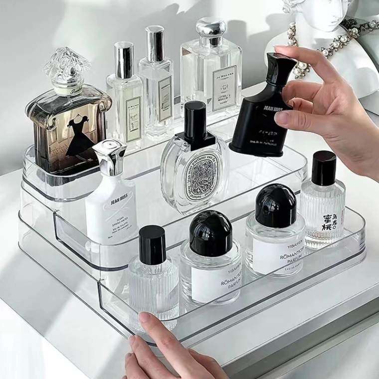 O Organizador Acrílico de 3 Andares traz a combinação perfeita entre estética moderna, praticidade e transparência cristalina — destacando cada detalhe das suas fragrâncias e cosméticos favoritos.