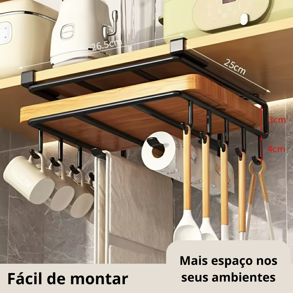 Os ganchos resistentes suportam diversos itens do cotidiano, evitando bagunça, e sem aquele acúmulo que gera estresse visual. Tudo fica no lugar certo, do jeito que sua rotina merece.