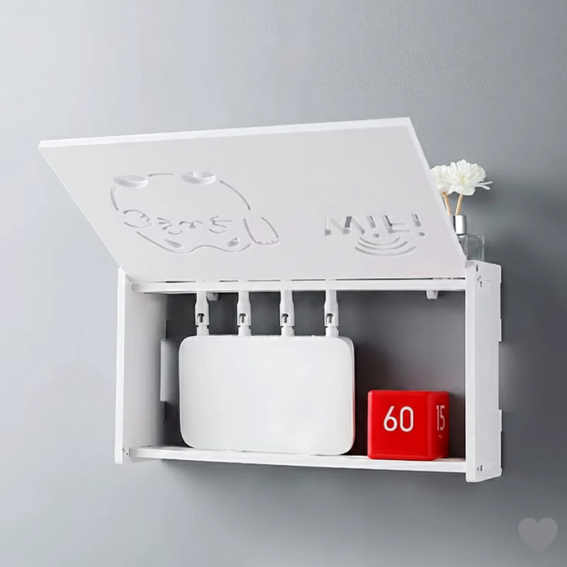 Imagine um cantinho da sua casa onde fios desaparecem, o ambiente fica mais leve e tudo ganha um toque de ordem silenciosa. Essa prateleira organizadora foi criada exatamente para isso: esconder a bagunça e revelar a beleza. A estrutura em PVC resistente possui recortes ventilados que garantem circulação de ar e não bloqueiam o sinal Wi-Fi. A tampa superior basculante facilita o acesso para ajustar cabos ou reiniciar dispositivos, enquanto o espaço interno acomoda roteadores padrão e passa-cabos traseiros para um visual totalmente limpo.